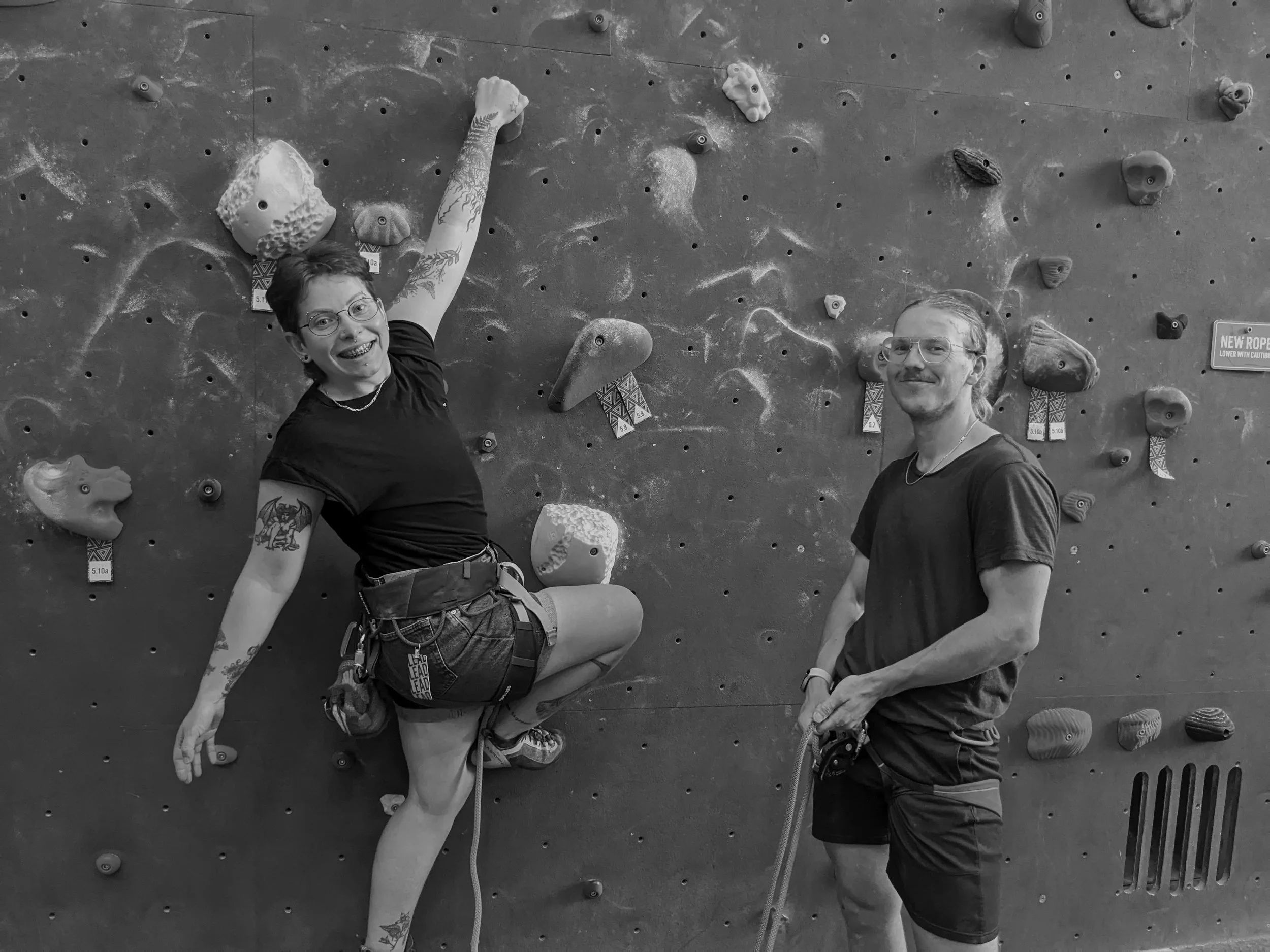 I: Fair enough. Why did you two start climbing in the first place? What do you like about it?